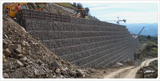 石籠網由高抗腐蝕、高強度、具有延展性的低碳鋼絲或者包覆PVC的以上鋼絲使用機械編織而成,使用該網制作而成的箱型結構就是石籠網箱。根據ASTM和EN標準,所使用的低碳鋼絲直徑根據工程設計要求而不同。一般介于2.0-4.0mm之間,石籠網鋼絲的抗拉強度不少于38kg/m2,金屬鍍層重量一般高于245g/m2,石籠網片的邊緣線直徑一般要大于網線直徑。其雙線絞合部分的長度不得小于50mm.以保證絞合部分鋼絲的金屬鍍層和PVC鍍層不受破壞。