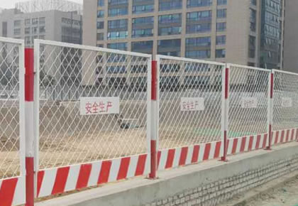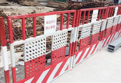 臨邊護欄主要用于建筑施工現場臨時防護使用,有效防止車輛人員掉入基坑,是建筑工地文明安全施工標準化的重要防護措施。基坑開挖深度達到2M以上時,周邊必須安裝基坑臨邊防護欄,防護欄高度不低于1.2m,立柱之間不宜大于2m,基坑臨邊防護網種類很多,一般使用黑黃色和紅白色較多,根據使用需要可在防護欄噴涂:禁止攀爬、注意安全、請勿靠近、嚴禁拋物,禁止跨越等字樣,警示施工人員注意安全施工。