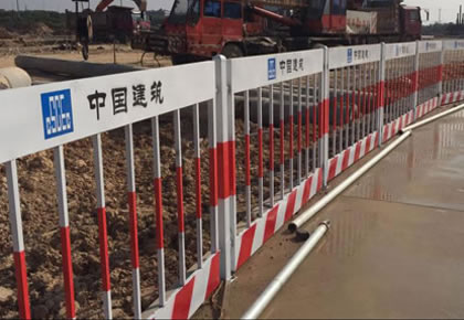 基坑防護欄安裝方便,可重復使用。開挖深度超過2m的基坑周邊必須安裝防護欄桿。防護欄桿應符合下列規定:1.防護欄桿高度不應低于1.2m;2.防護欄桿應由橫桿及立桿組成。橫桿應設2~3道,下桿離地高度宜為0.3 m~0.6m,上桿離地高度宜為1.2 m~1.5m;立桿間距不宜大于2.0m,立桿離坡邊距離宜大于0.5m;3.防護欄桿宜加掛密目安全網和擋腳板。安全網應自上而下封閉設置;擋腳板高度不應小于1